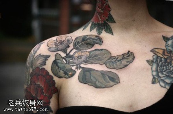 后肩唯美花藤英文图案图片_植物纹身图案大全_纹身图吧