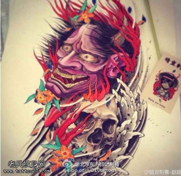 惊悚的般若骷髅纹身图案