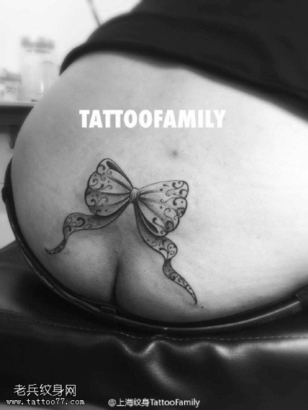 女生后腰纹身黑白灰风格抽象线条纹身图案