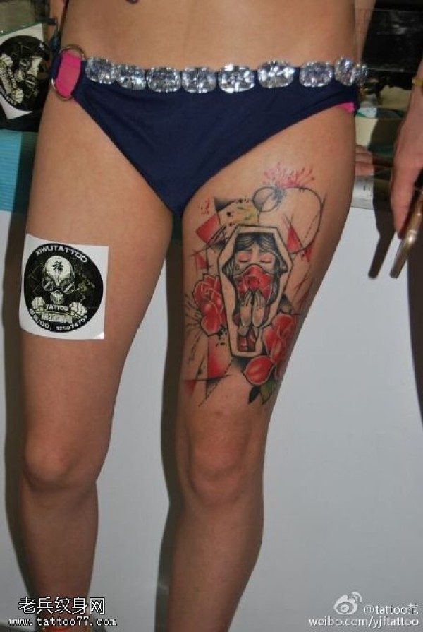 传统花腿纹身--18张传统风格的大花腿纹身图案作品