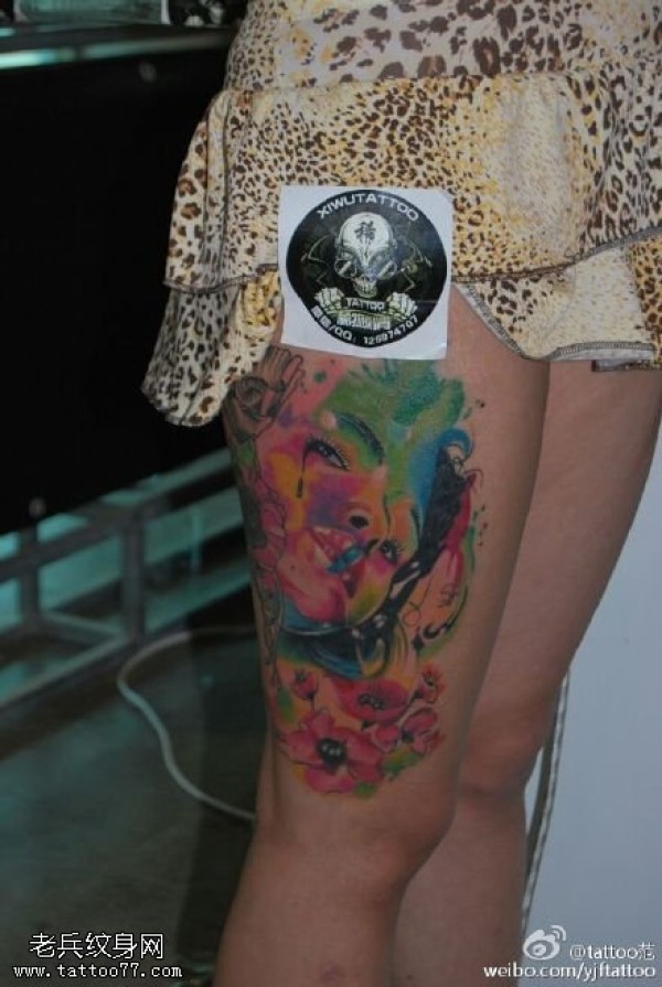 传统花腿纹身--18张传统风格的大花腿纹身图案作品