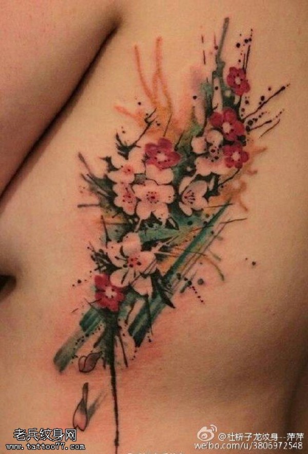 水墨彩绘樱花纹身图案
