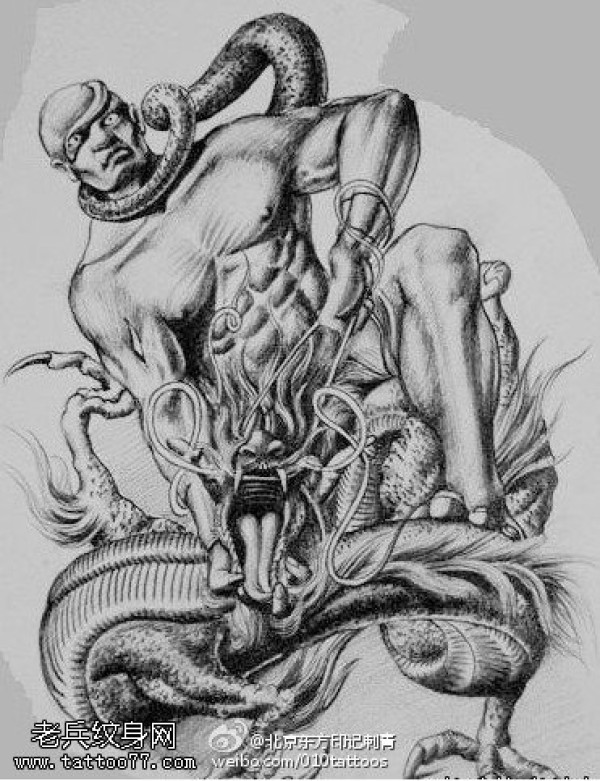 龙纹身手稿_一组老传统黑灰龙手稿纹身图案