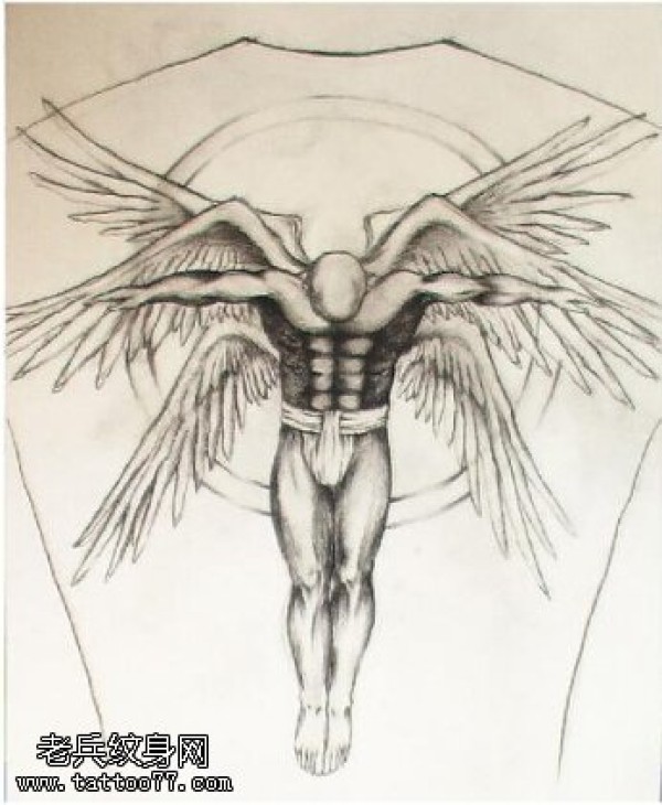 经典素描六翼天使纹身图案