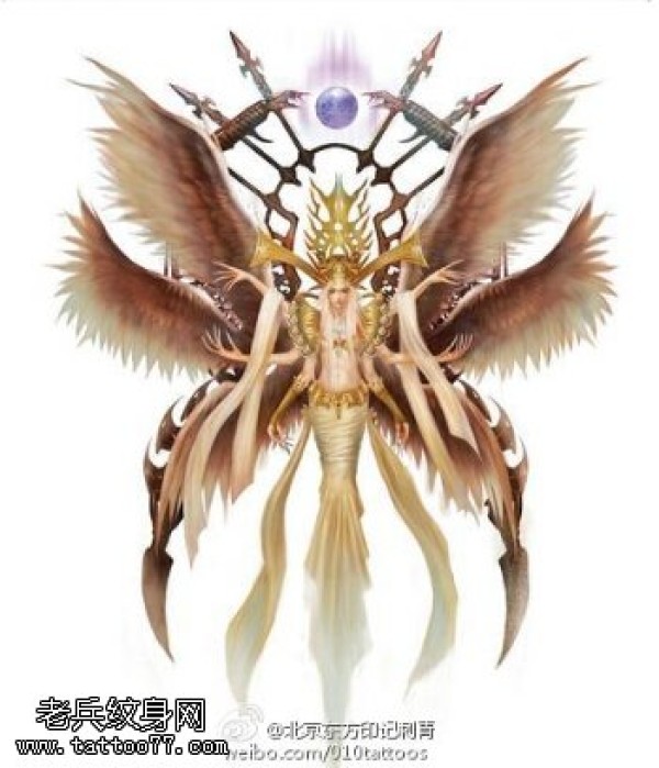 精美六翼天使手稿纹身图案