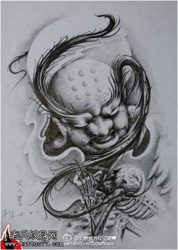 能面万媚纹身手稿_52张日式能剧面具纹身手稿图案素材欣赏