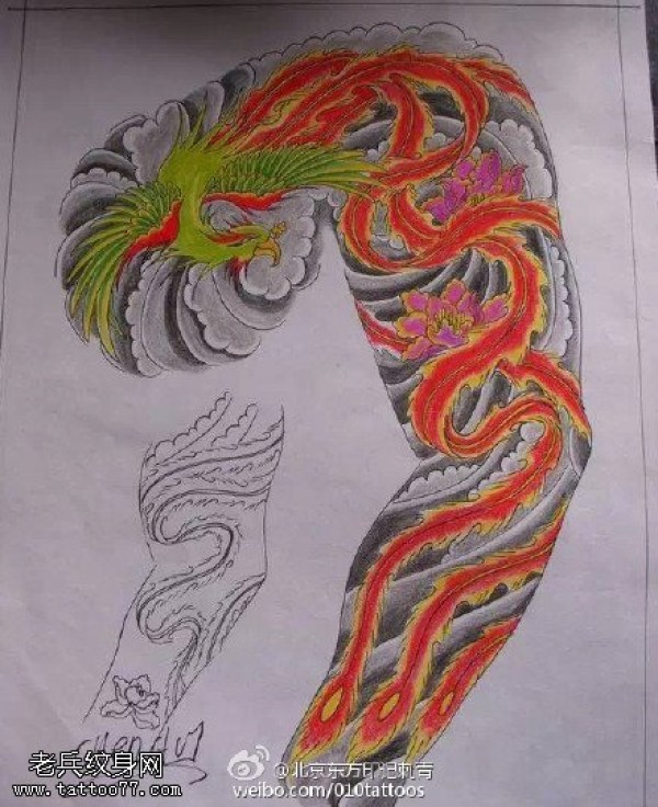 经典彩绘凤凰传奇纹身图案