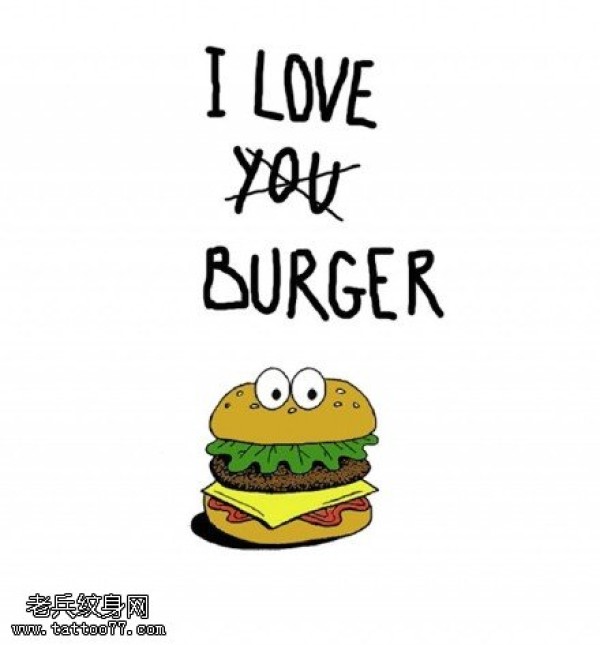 彩绘英文汉堡包纹身图案