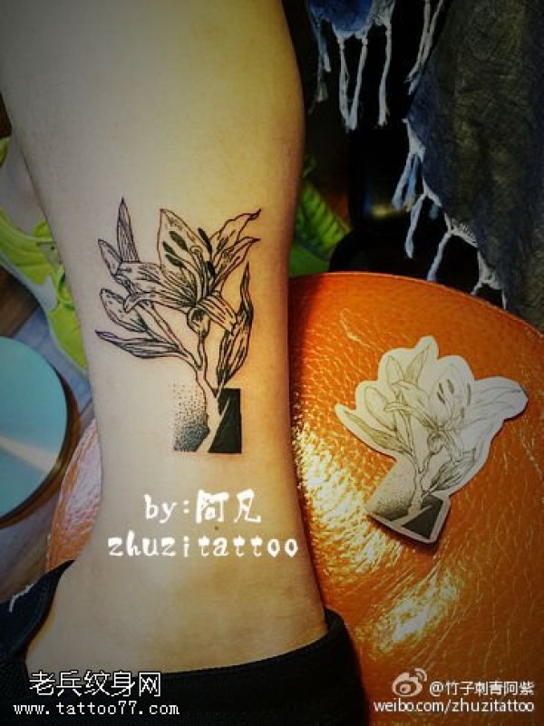 清新花朵腿部纹身图案图片_植物纹身图案大全_纹身图吧