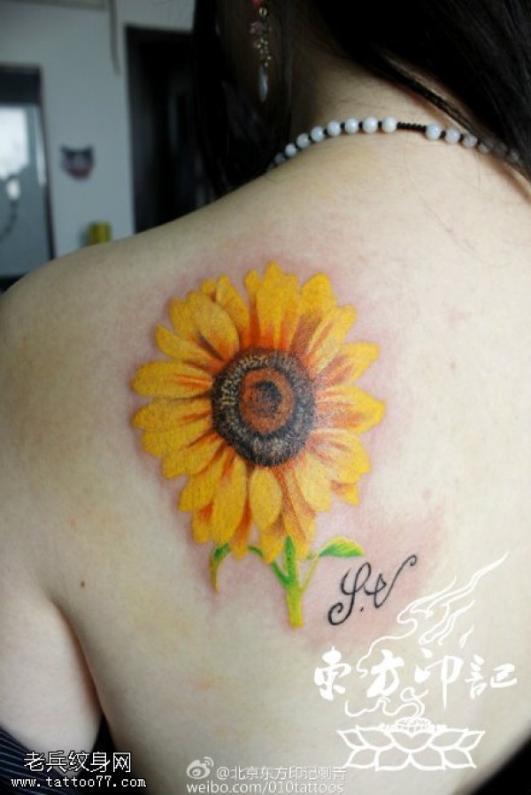 草图感向日葵纹身图案_植物纹身图案大全_纹身图吧
