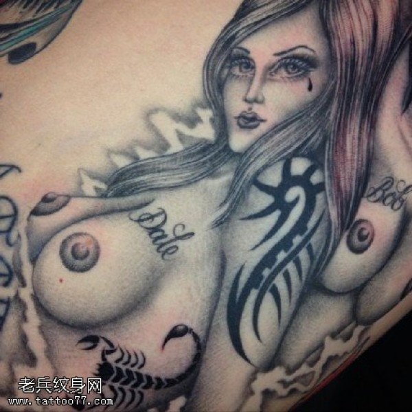 欧美女郎咪咪纹身图案