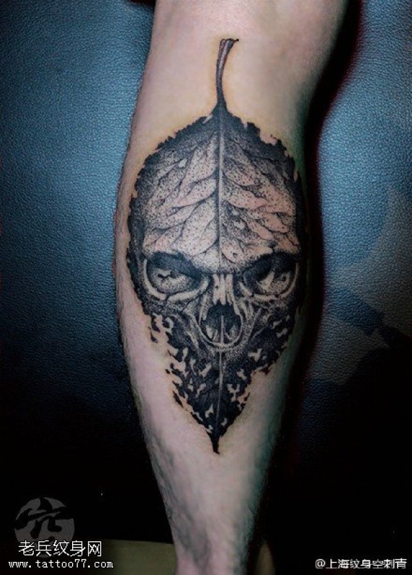 枫叶纹身骷髅文身彩色刺青_男士小图_骷髅纹身图案大全_纹身图吧