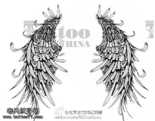 代表自由的翅膀手稿纹身图案