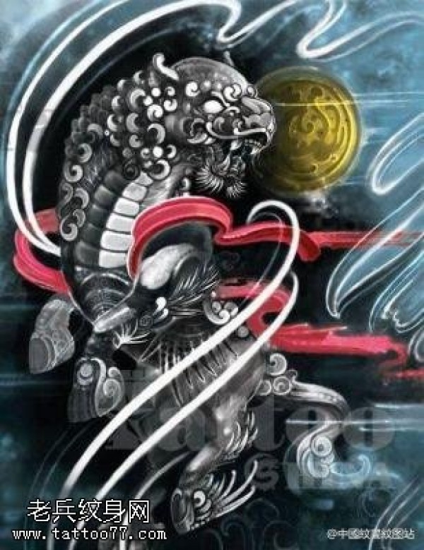 龙纹身手稿_一组老传统黑灰龙手稿纹身图案