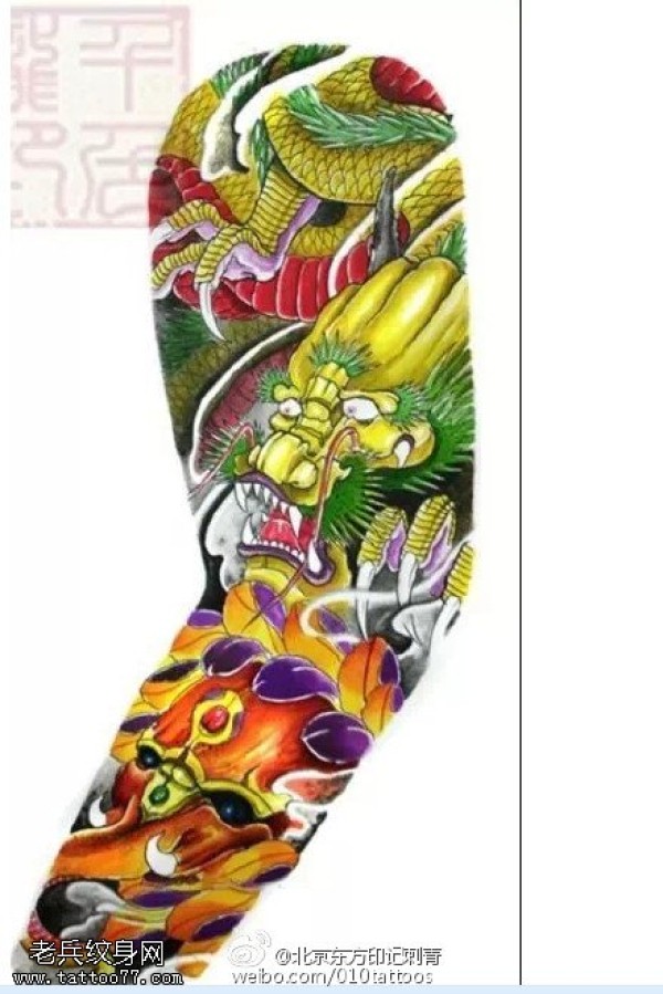 经典彩绘龙手稿纹身图案