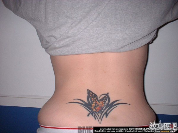 分享一款腰部时尚性感的蝶恋花纹身图案_腰部纹身图案大全_纹身图吧