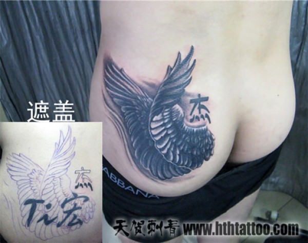 北京纹身作品翅膀遮盖纹身,天贺刺青纹身作品