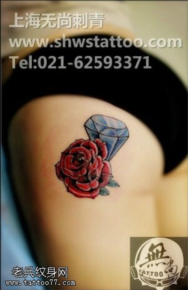 精美的玫瑰钻石纹身图案