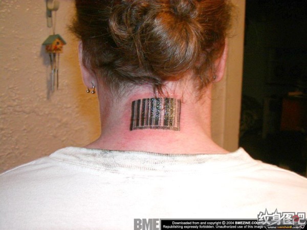 脖子上的黑色条形码纹身