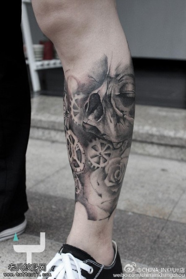 写实骷髅车轮纹身图案