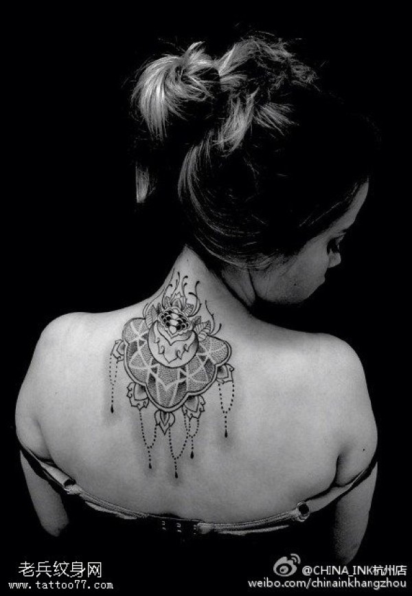 后颈部纹身小图--9张女生脖子后颈处的简约纹身图案