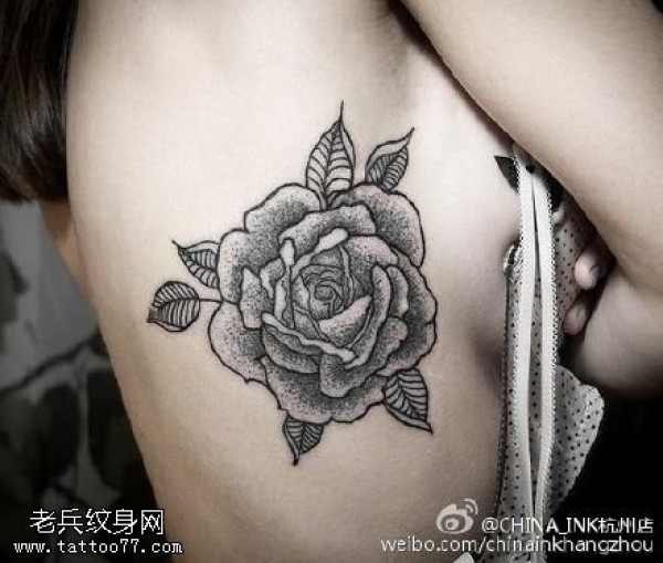 精美点刺玫瑰花纹身图案