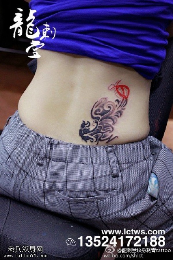 分享一款腰部时尚性感的蝶恋花纹身图案_腰部纹身图案大全_纹身图吧
