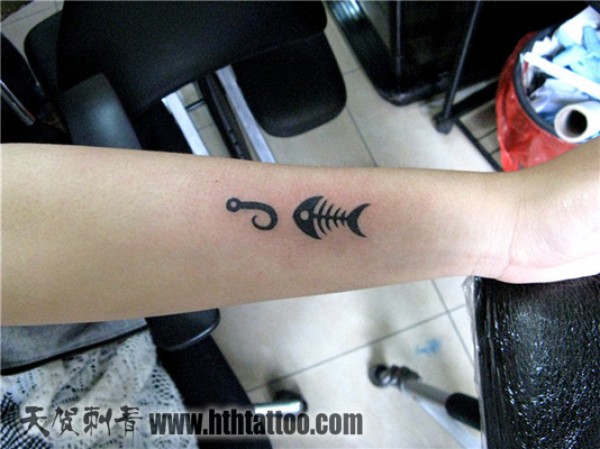 北京朝阳纹身之鱼和鱼钩图腾纹身,天贺刺青纹身作品