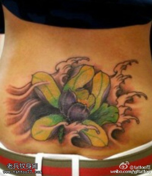 女性腰部莲花花纹刺青_腰部纹身图案大全_纹身图吧