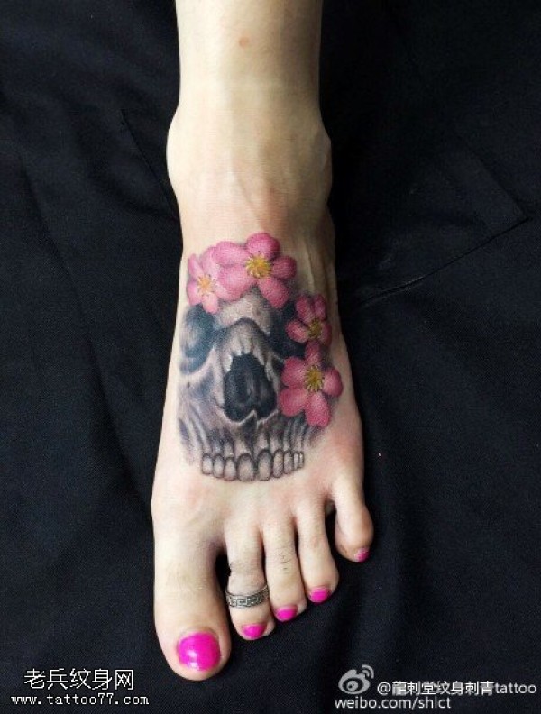 清新小桃花脚踝纹身_脚部纹身图案大全_纹身图吧