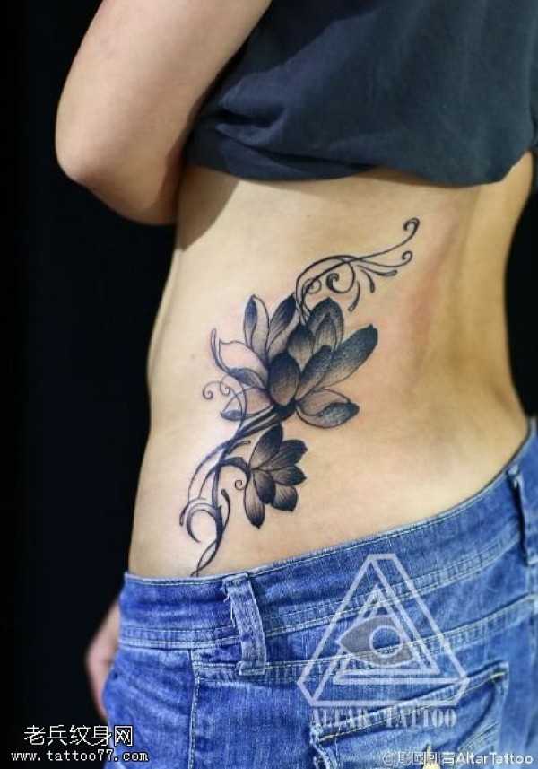 女性腰部莲花花纹刺青_腰部纹身图案大全_纹身图吧