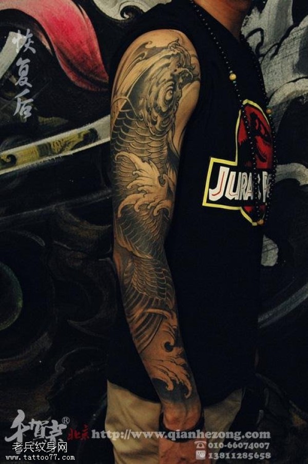 鲤鱼花臂纹身图案