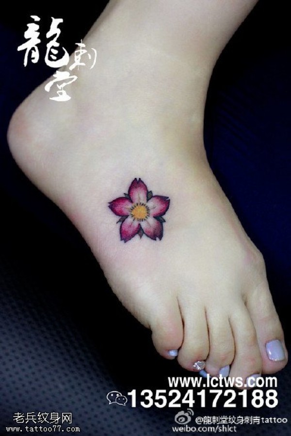 清新小桃花脚踝纹身_脚部纹身图案大全_纹身图吧