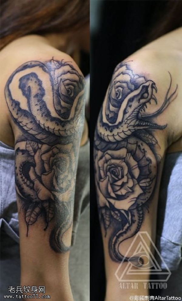 手臂莲花蛇纹身图案_臂部纹身图案大全_纹身图吧