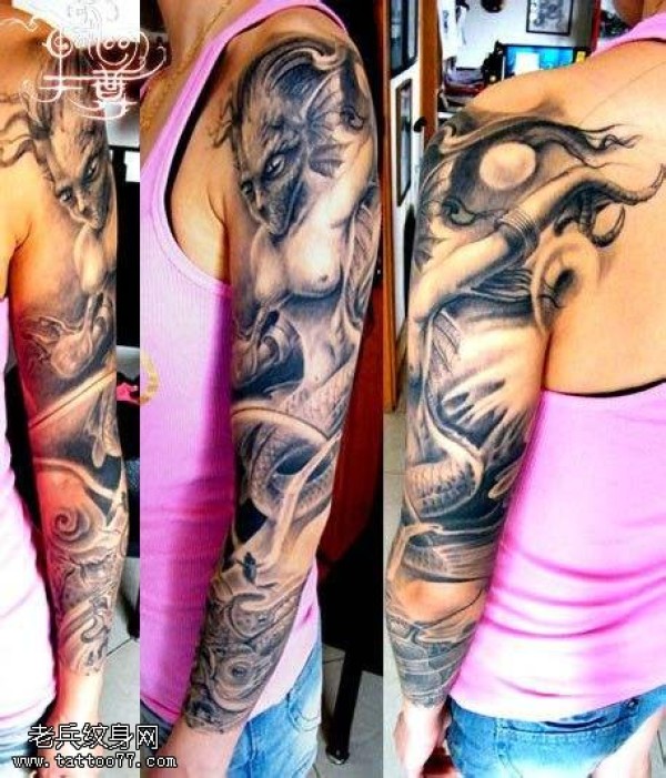 手臂莲花蛇纹身图案_臂部纹身图案大全_纹身图吧