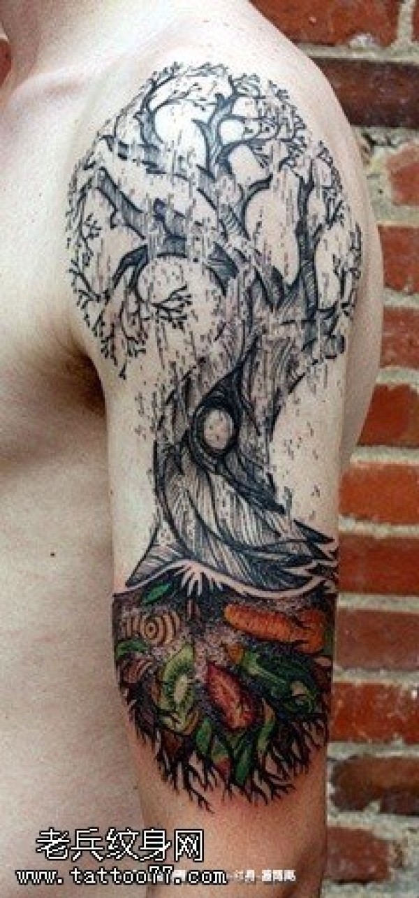 后肩唯美花藤英文图案图片_植物纹身图案大全_纹身图吧
