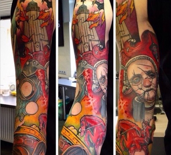 手臂一款彩色蘑菇纹身图案_臂部纹身图案大全_纹身图吧