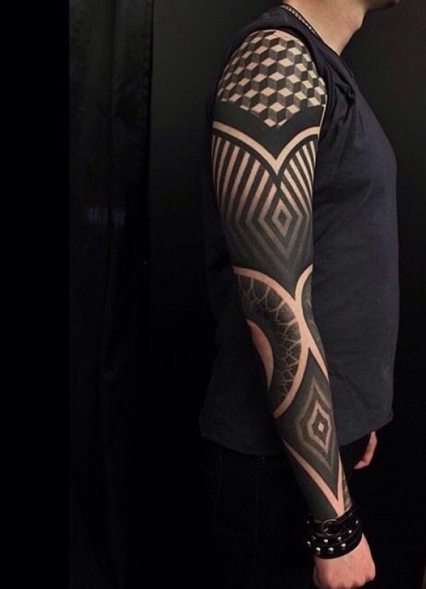 25款男性黑色手臂线条纹身点刺技巧半甲纹身图案
