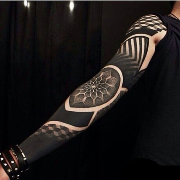 25款男性黑色手臂线条纹身点刺技巧半甲纹身图案
