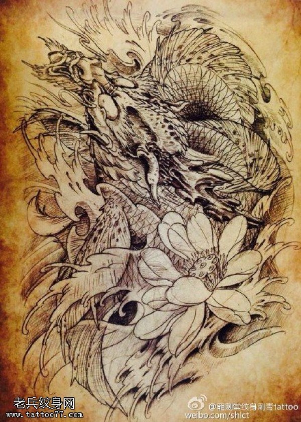 龙纹身手稿_一组老传统黑灰龙手稿纹身图案