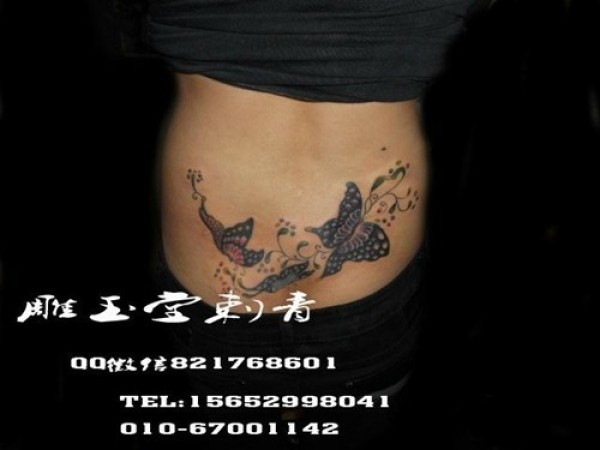 分享一款腰部时尚性感的蝶恋花纹身图案_腰部纹身图案大全_纹身图吧