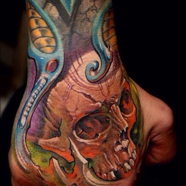 超帅时尚的黑灰骷髅与蛇纹身图案