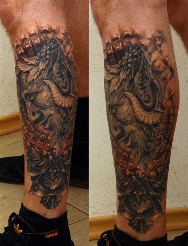 花腿纹身--一组大黑腿纹身图案作品欣赏
