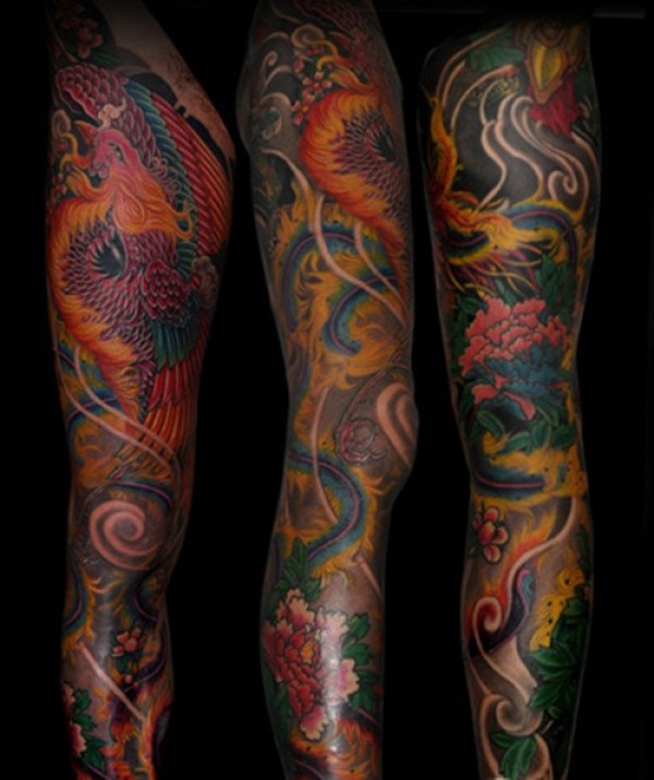 传统花腿纹身--18张传统风格的大花腿纹身图案作品