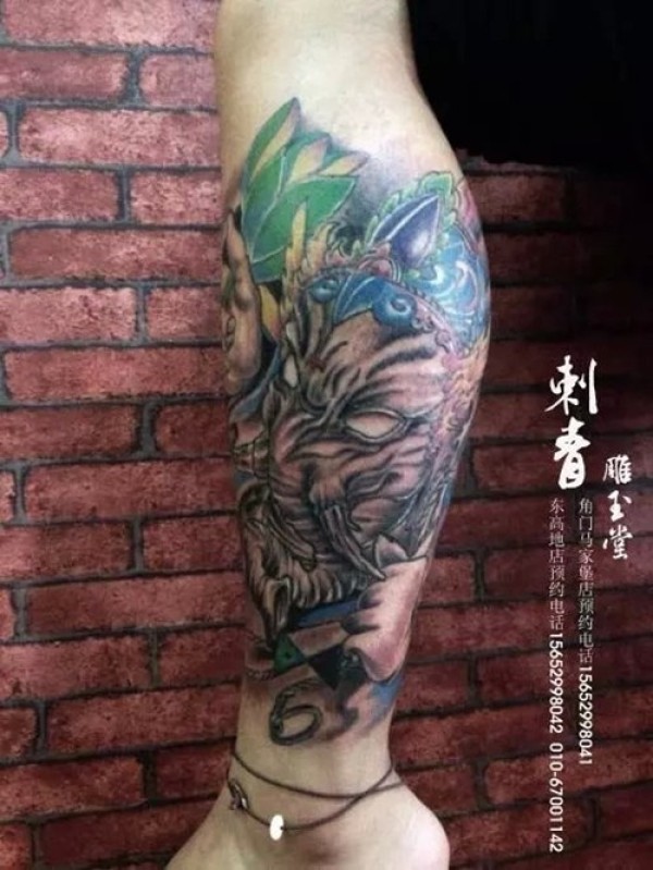 传统花腿纹身--18张传统风格的大花腿纹身图案作品