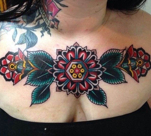 女性大花胸纹身_43张霸气漂亮的女性大花胸纹身图案作品