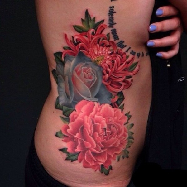 女性腰部莲花花纹刺青_腰部纹身图案大全_纹身图吧