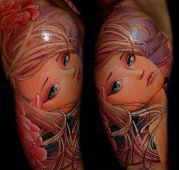 复古卡通红唇美女手臂纹身_卡通纹身图案大全_纹身图吧