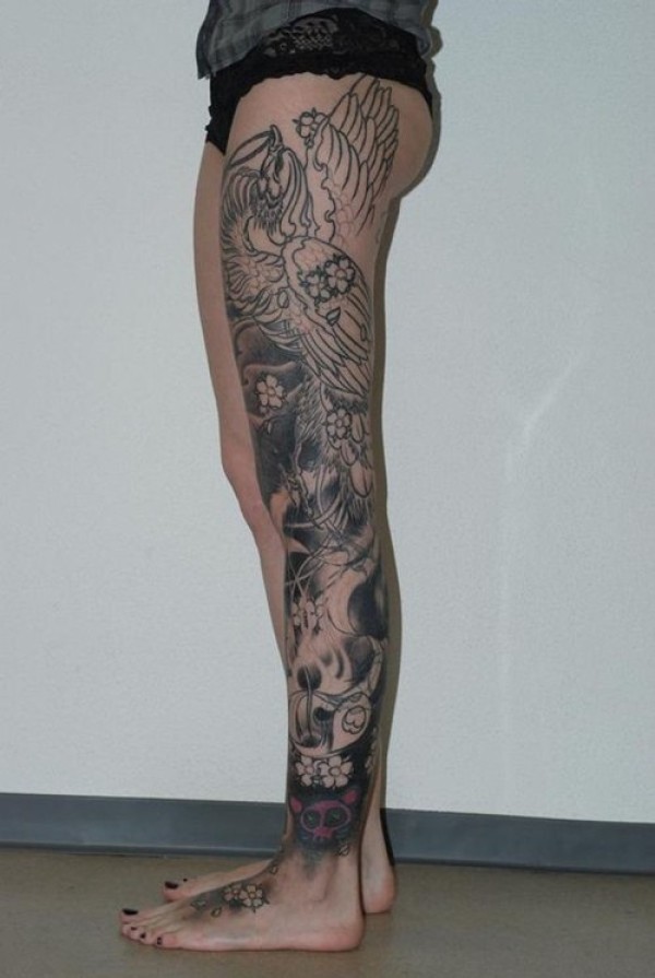 花腿纹身--一组大黑腿纹身图案作品欣赏