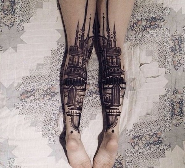 花腿纹身--一组大黑腿纹身图案作品欣赏